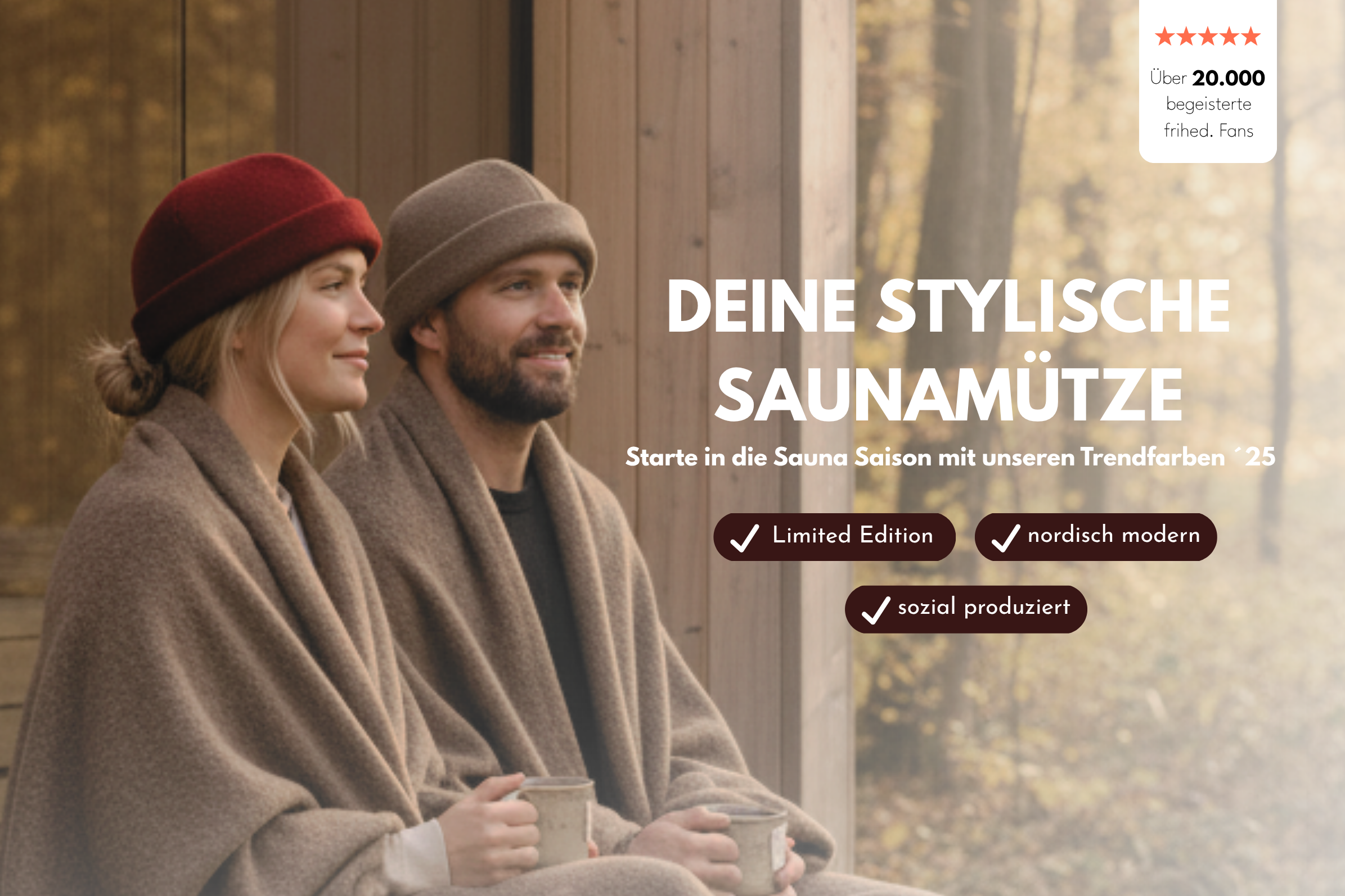 Warum sieht Sauna-Mode oft langweilig aus? Mit frihed. setzen wir auf hochwertige, nachhaltige Materialien wie Wollwalk für unsere Saunamützen – stilvoll, funktional und perfekt für jeden Sauna-Aufenthalt. Ergänze dein Outfit mit den besten Saunaaufgüssen, die du in unserem Saunaaufguss-Shop finden kannst. Egal, ob du dich mit einem Wellness-Gutschein selbst belohnen oder Wellness verschenken möchtest – mit frihed. bist du immer perfekt ausgestattet!